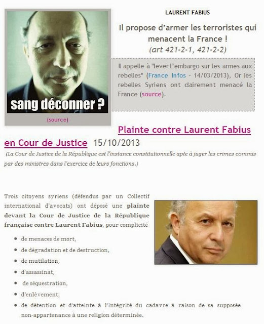 constater les crimes commis par les jihadistes internationaux soutenus par M. Laurent Fabius [1].